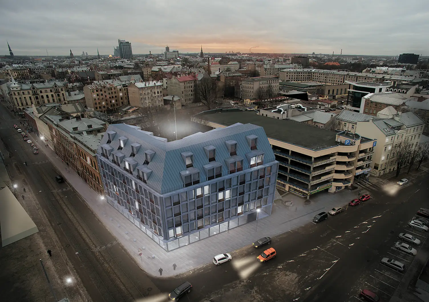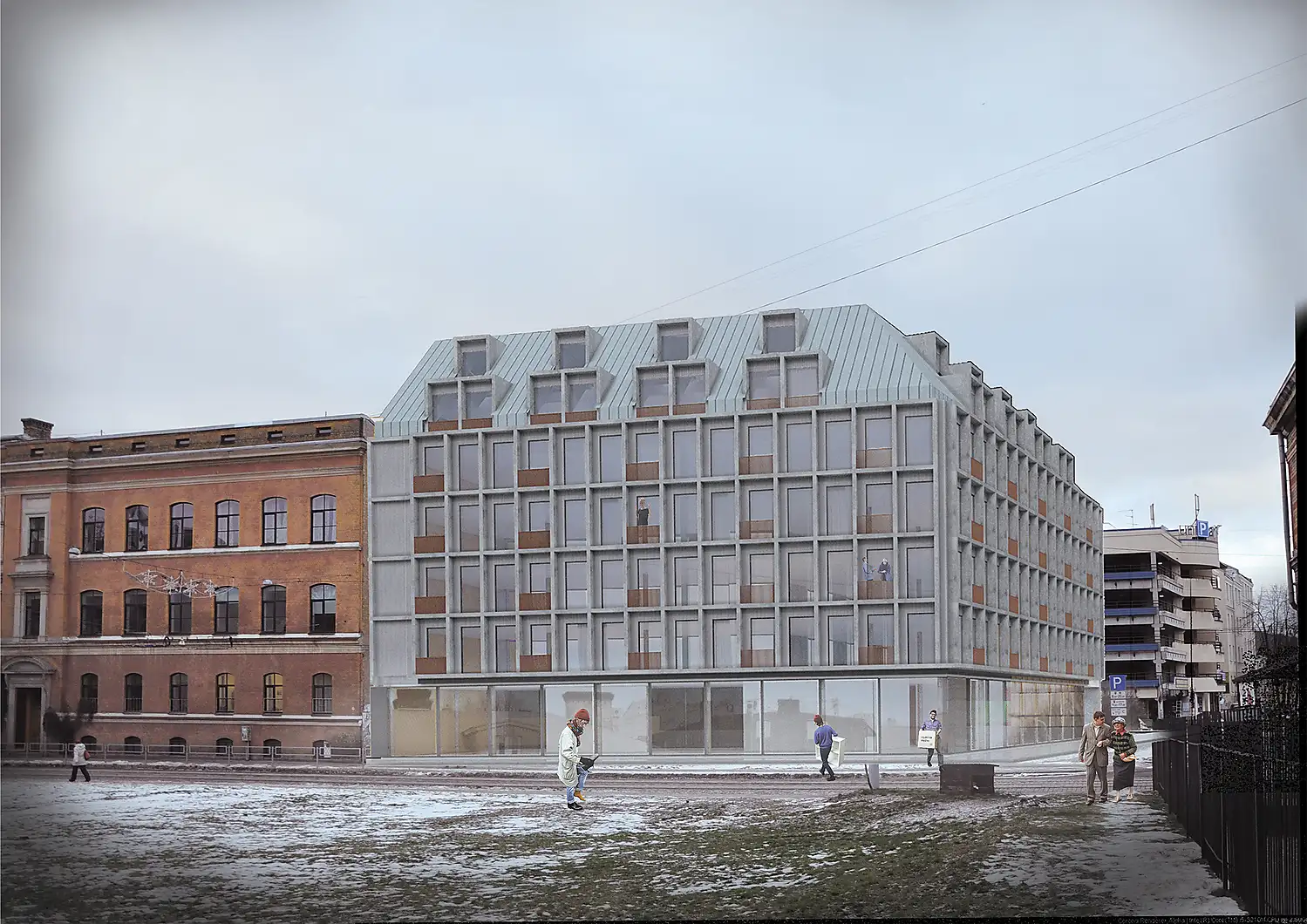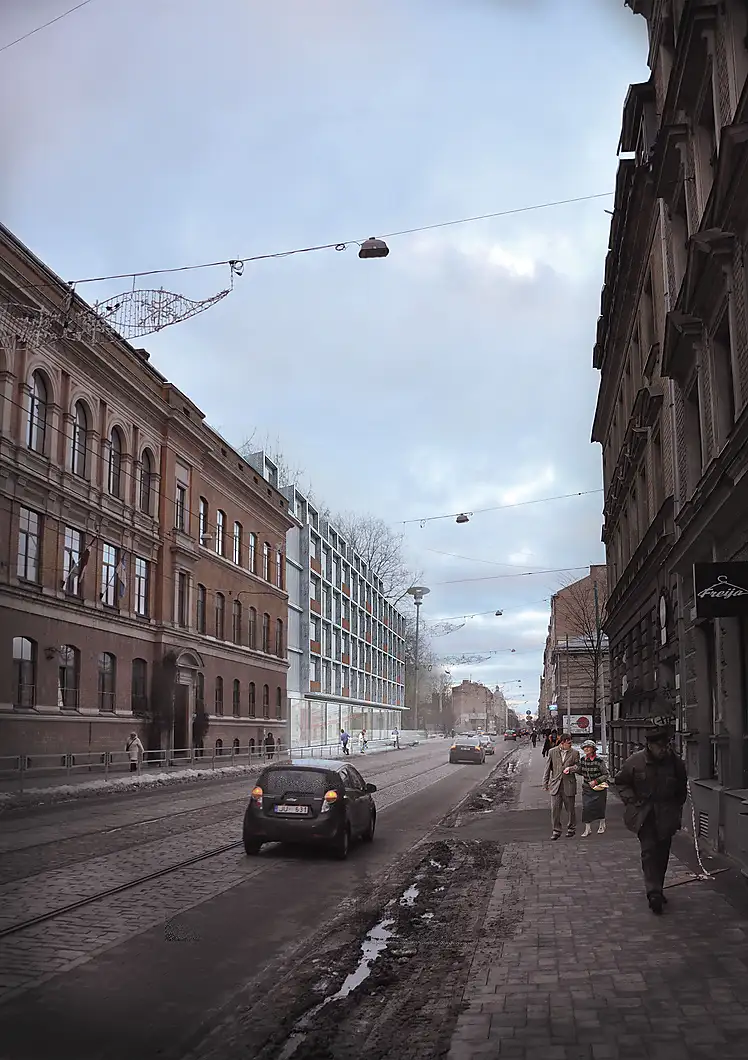 Structure type construction for the design building – a supporting frame of concrete beams with monolithic reinforcement covers. A glazed structure of self-supporting concrete panels/equipment is used for the exterior wall design. Such a constructive solution can indeed be seen as the most efficient, as modern global endpoints demonstrate the inefficiency of static constructions – society's desires and demands are changing and the building needs to be able to adapt to these requirements. The design and finishing materials selected will ensure the building's long-term and reduced operating costs.